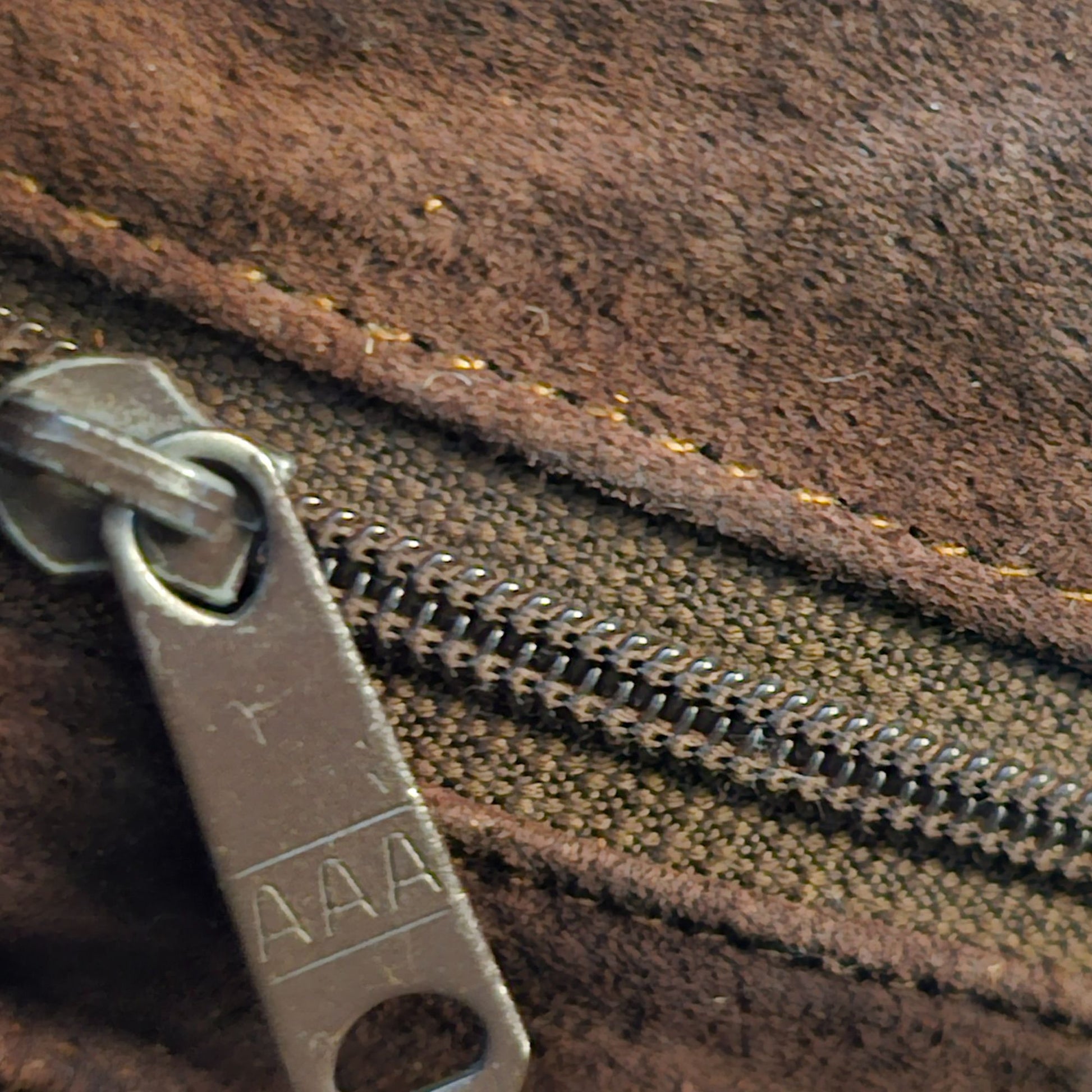 Vintage Eel Skin Genuine Leather Brown Handbag With Double Handles & Zip Closure